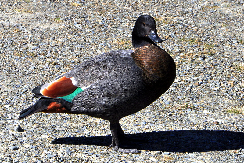 Hier nog wat foto’s van de paradijseenden die een kruimeltje mee proberen te pikken van wat de toeristen achterlaten op de parkeerplaats bij de Hookervalley track: