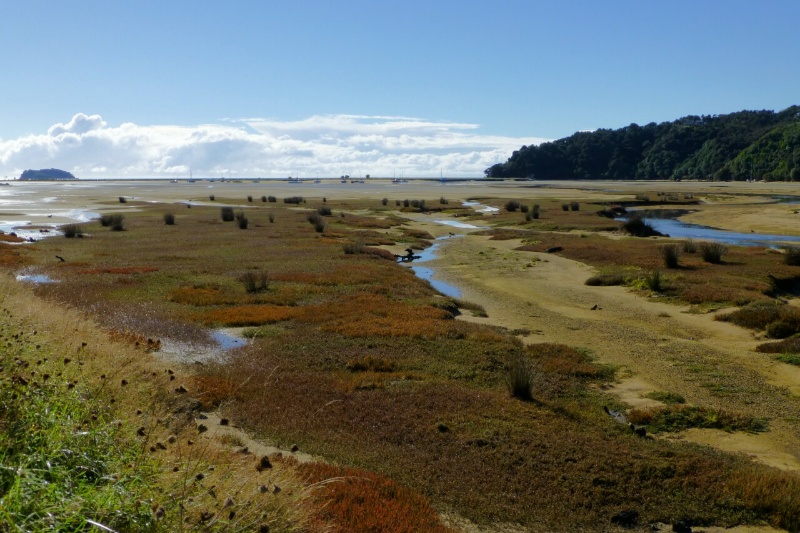 We vertrekken naar de oost ingang van het park. We passeren een mooie lagune nabij Marahau, prachtig om al die verschillende kleuren te zien! We komen aan bij het park en het weer is inmiddels al een stuk opgeklaard. We balen enigzins omdat we wellicht toch die tocht hadden kunnen doen. Dan maar een ander stuk gaan lopen.