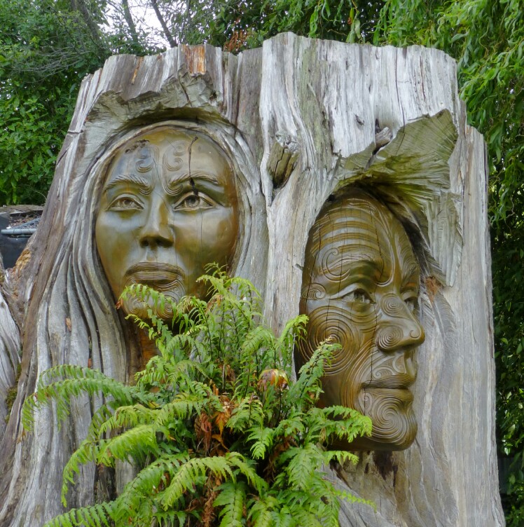 We maken eerst een korte hike en bekijken daarna de mooie houtgesneden beelden van een bekende lokale kunstenaar. Als we ons opmaken om de hike te gaan lopen, begint het weer lichtjes te regenen. Jammer, dan maar verder doorrijden naar het oosten waar het weer wat mooier lijkt te zijn.