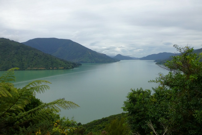 De Marlborough Sounds worden, net als de Great Ocean Road bij Melbourne, geprezen om hun pracht. Dit keer laat ons de weerman echter in de steek. De 26 graden en volle zon worden niet gehaald. Het is weliswaar niet koud en de temperatuur ligt boven de 20 graden, echter de hele dag schijnt de zon nauwelijks en is de hemel bedekt met een lichtgrijze wolken massa. Vanaf Nelson rijden we richting Havelock, waar we afdraaien richting Picton over de beroemde Queen Charlotte Road, die ons langs enkele van de bekende “sounds” (bij ons beter bekend als fjorden) brengt. Het uitzicht is mooi, echter de hoeveelheid wolken zorgen er voor dat de unieke camera fragmenten nauwelijks voorhanden zijn. Vanuit Picton nemen we de Highway 1 richting Blenheim en dan door naar Kaikoura.