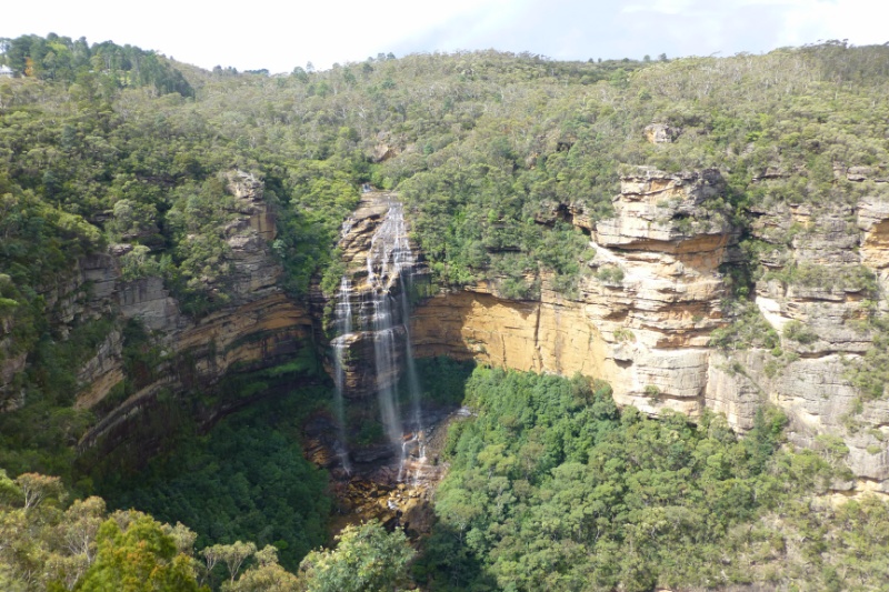 Het regent in Sydney maar we zien in de verte al de blauwe lucht schijnen en hopen op goed weer in de Blue Mountains. We rijden het drukke Sydney uit via de Anzac Bridge. Ruim een uur later stoppen we eerst bij de Wentworth Falls waar we een prachtig uitzicht hebben op de zandstenen rotsformaties en de vallei beneden. Natuurlijk vliegen ook hier weer de vogeltjes driftig rond en het is alweer hopeloos om de fantail goed op de foto te krijgen. We lopen een aantal trappen omlaag en komen uit bij een uitkijkpunt over de waterval. Prachtig in het zonlicht vind het water zich via verschillende paden een weg naar beneden!